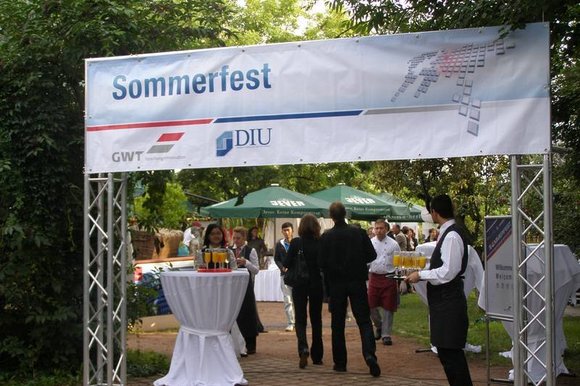 Beginnend mit kurzen Ansprachen des neuen Präsidenten der DIU, Prof. Dr. Hans Wiesmeth und des Geschäftsführers der GWT-TUD GmbH, Herrn Claus-Peter Held, nutzen die knapp 400 Gäste die Gelegenheit, bei angeregten Gesprächen, einem reichhaltigen Grillbuffet, guten Getränken und stimmungsvoller Musik, angeregte Gespräche zu führen, sich wiederzusehen, Kontakte zu knüpfen oder einfach nur in toller Atmosphäre einen herrlichen Sommerabend an der Elbe zu verbringen.